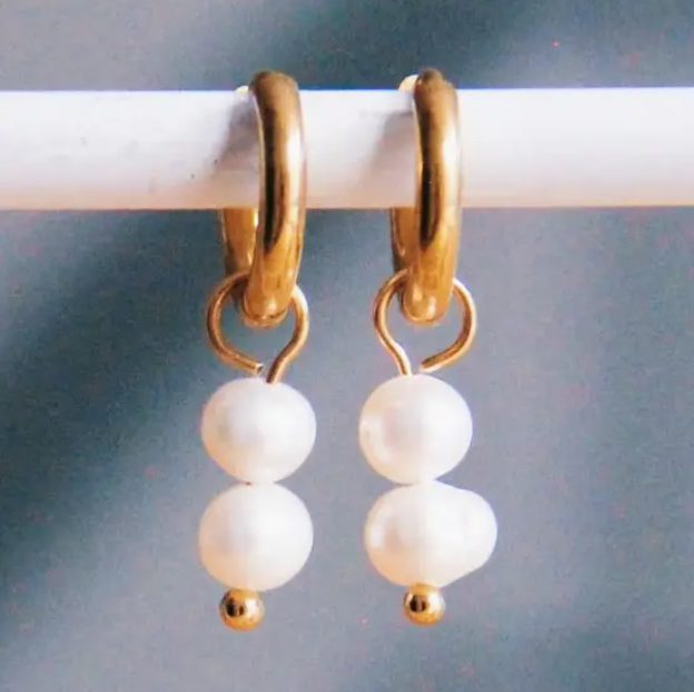 Créoles en acier avec 2 perles d’eau douce - Or - SS352