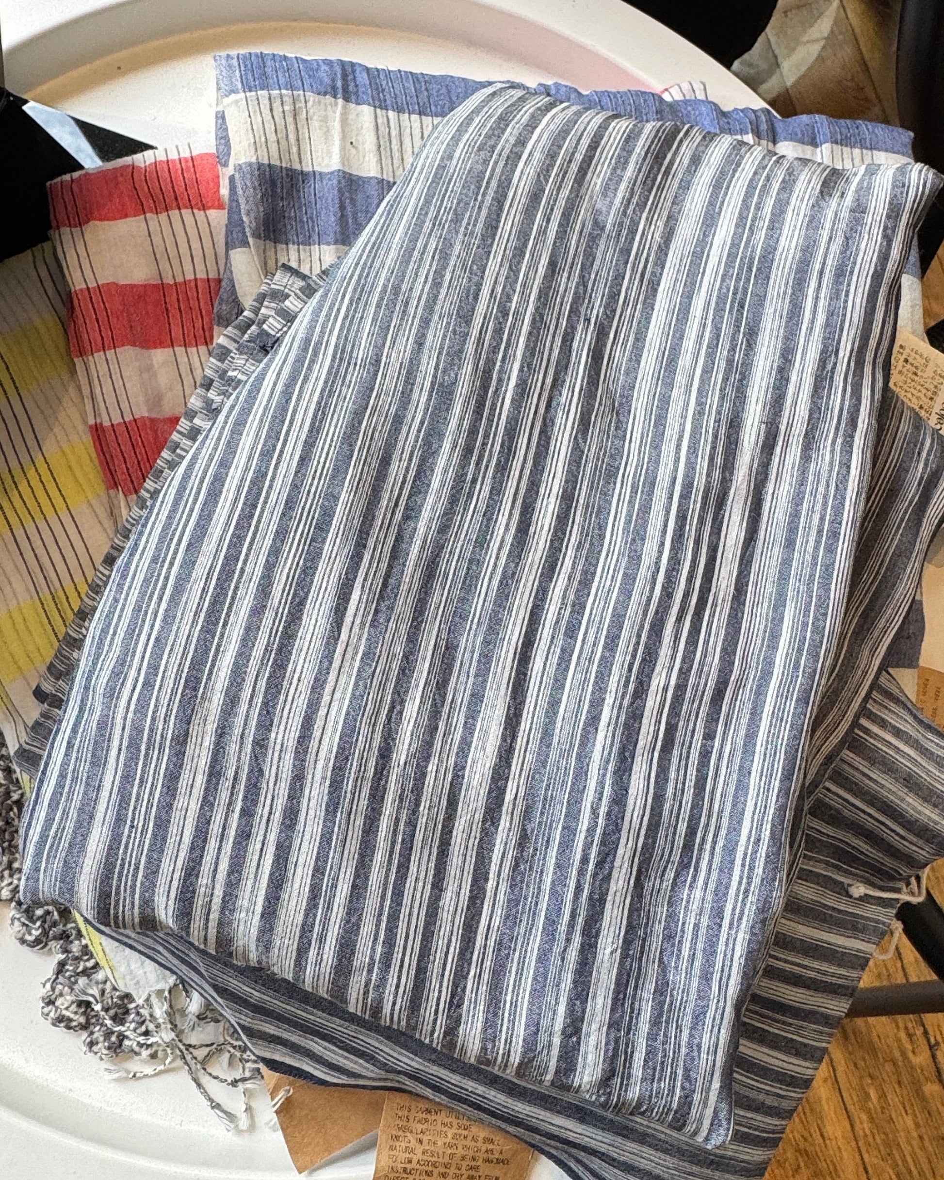 Écharpe coton & soie La Maison de Soil rayures bleues blanches