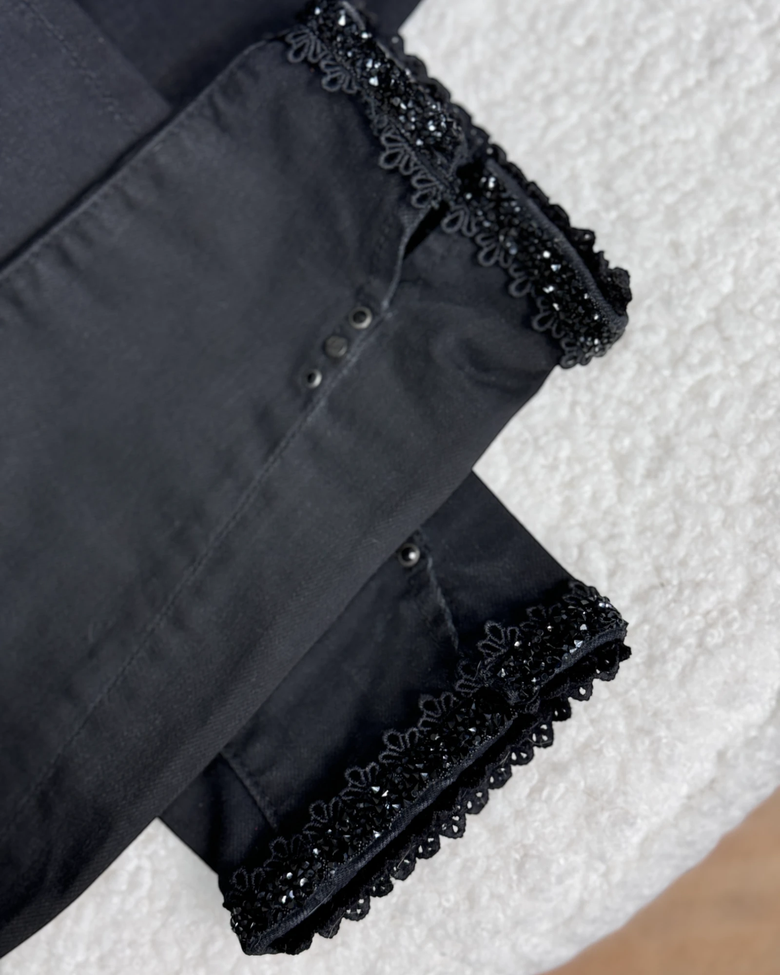 Des perles encore, soulignent avec finesse le bas du pantalon.